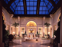 都会の喧騒を忘れてホテル阪急インターナショナル25階。都会の喧騒を忘れられる、別世界の様なロビーを抜けて店内へどうぞ。花をイメージした泉のある「アトリウムロビー」は記念撮影のスポットとしても人気です。 |