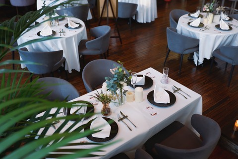大きな窓と店内を流れる水の音が心地よい気持ちにさせてくれるレストラン。自然光がさしこむ空間は、装飾・演出・お料理メニューまですべておふたりのオリジナルスタイルが叶います。