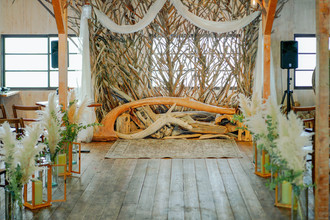 グランピングアイテムが各所に散りばめられた【FUN SPACE DINER なんば】は、思わず写真を撮りたくなるフォトジェニックなスポットがいっぱい。ステージを高砂として使用したり、ケーキカットやファーストバイトなどに使用することも可能です。ステージ横にあるお洒落なラタンチェアはフォトブースとして使用できるので、ゲストと一緒に素敵な思い出の一枚を残していただけます。テーブルレイアウトや店内の装飾は自由にコーディネートできるので、おふたりらしいカジュアルなウエディングが叶います。 設備の詳細を見る