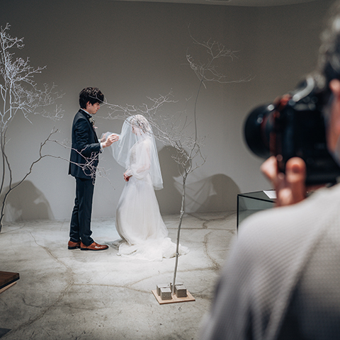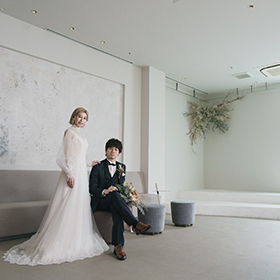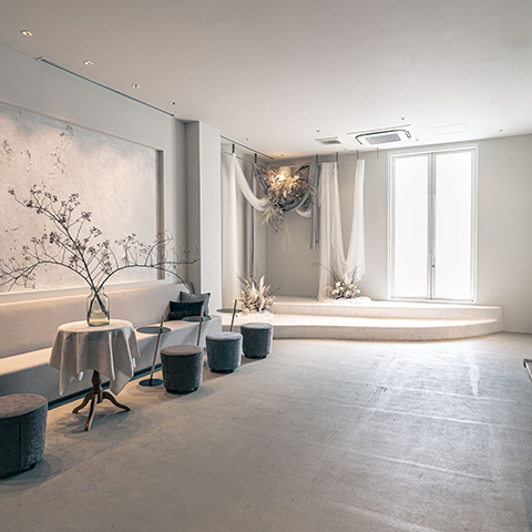『Apartment2c Wedding』のコンセプトを象徴するのが「Outside the Chapel」。純白の空間にベンチが並ぶシンプルなチャペルはプロジェクションマッピングで雰囲気が変化。鎮まりや温かさ、荘厳さなどイメージがグラデーションします。また、お2人のご家族写真の投影と同時にお2人からの誓いの言葉や感謝を伝えることで列席者との一体感を創出する演出も。挙式の固定概念を超えて、お2人がほんとうに大切にしたいものをセレモニーに載せる。そんなオリジナル進行を可能とするチャペルです。 設備の詳細を見る