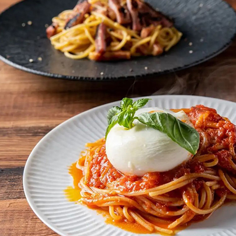 〜マキヤキロメインレタスサラダ〜〜にんにくハーブのフライドポテト〜〜季節のおすすめパスタ〜〜季節のおすすめリゾット〜〜国産もち豚の薪焼き〜〜本日のドルチェ(デザート)〜※飲み放題付