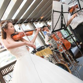 ゲストへのサプライズ演出としてウェディングドレスを着ての演奏も素敵です。