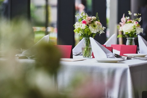 会場専任のフローリストがおふたりにぴったりなコーディネートをご提案。かわいらしく、華やかに、清々しく……季節を映す装花や小物でおふたりらしくコーディネート。ゲストとほどよい距離感でなごやかにお食事を楽しんでいただけるのが魅力。スクリーンもご自由にお使いいただけます。