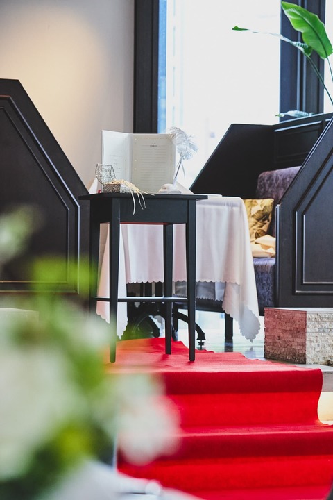 新郎新婦様控え室、スクリーンを備え、少人数ながらも贅沢な空間と機能性は上質なウエディング仕様です。大切なご家族、大好きな友人たちを招くアットホームなパーティにおすすめです。記念日に思い出の場所として戻ってくることができるのもレストランウエディングの魅力。いつまでもおふたりにとってのふるさとのような場所でありたいと願っています。