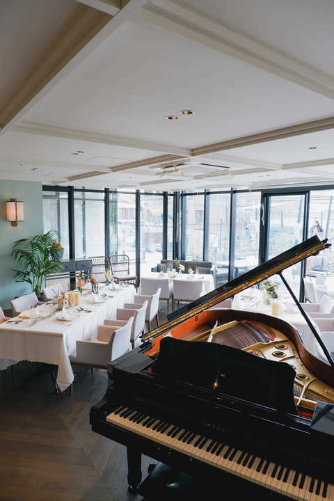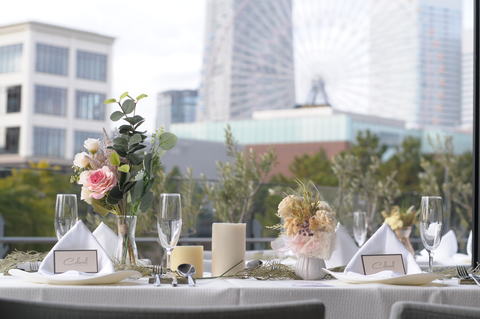 会場専任のフローリストがおふたりにぴったりなコーディネートをご提案。かわいらしく、華やかに、清々しく……季節を映す装花や小物でおふたりらしくコーディネート。ゲストとほどよい距離感でなごやかにお食事を楽しんでいただけるのが魅力。スクリーンもご自由にお使いいただけます。