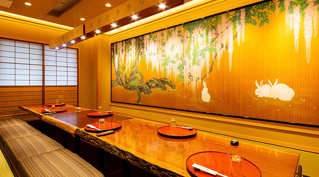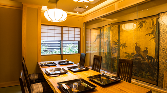 中州川端駅徒歩1分。和情緒あふれる完全個室あり。伝統の日本料理や博多の名物料理でハレの日をおもてなし