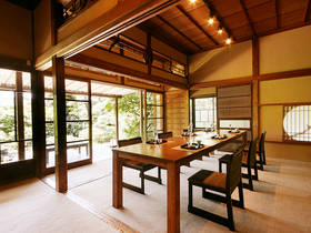 ◇庭園を眺めながら贅沢なご会食古民家を改築した、高天井の木の温もりある和室。 |