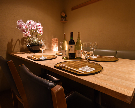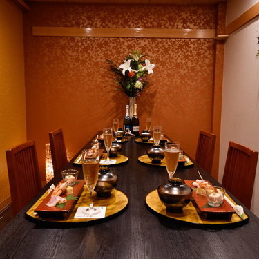 全室テーブル席の完全個室となります(4名様〜12名様) お人数に合わせ広々とした空間でご用意させていただきます。 |