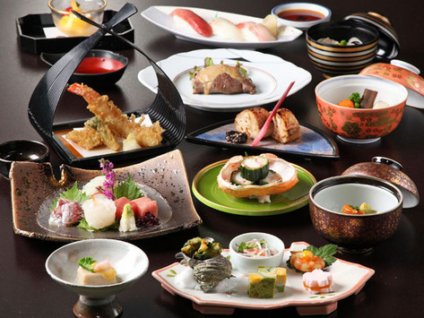 「寿コース(顔合わせにぴったり)5,000円」・先付け・前菜・吸い物椀・お造り・揚物(天麩羅)・おしのぎ・煮物・焼物・御飯物・香の物・デザート※お写真は一例です。
