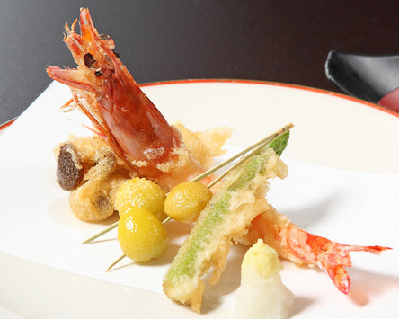 「だるま料理店 〜会席料理〜」でご提供する天ぷらの材料は、小田原近海で獲れた魚介類やお野菜を使用しております。使用するごま油は特注のものを使用。何とも言えない香ばしい味わいを是非一度ご賞味ください。
