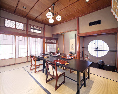 御座敷席の他、テーブル席もご用意「だるま料理店 〜会席料理〜」では、足元が不自由なお客様の為に、テーブル席もご用意しております。長時間の宴席もこちらの席ならゆったりとお楽しみいただけます。 |