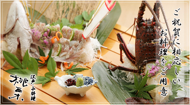 ご両家のお顔合わせに適した、新鮮な鯛の姿造りなどの