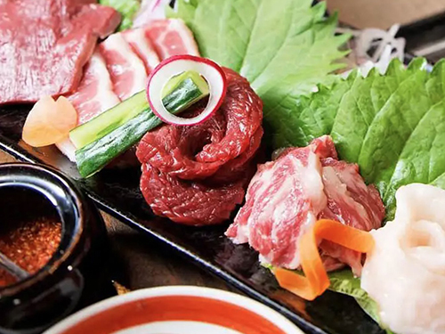 ◆季節のお通し(神戸牛肉寿司・手羽先の唐揚げ自家製柚子胡椒・酢の物・女将手作りおばんざい) |