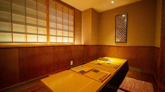 阪急烏丸駅より徒歩4分の好立地に店を構える【逸品さかい】。四季を感じる旬の食材を取り入れ、滋味豊かな京料理をご提供いたします。店内には最大12名様までご利用いただける、小あがりの半個室をご用意。掘りごたつになっておりますので、足を伸ばしてごゆっくりお寛ぎください。結納、顔合わせには、お一人様4,500円のおまかせコースもございます。季節の逸品と寛ぎの空間で、ご両家のハレの日をおもてなしいたします。