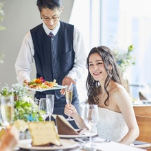 まずお料理ですが、20人、30人規模の場合ゲスト一人ひとりに違う料理を出すことは難しいですが、ゲスト層に合わせた料理を中心にセレクトすることは可能です。おふたりの出身地の食材をベースした、オリジナルのコース料理を楽しんでいただくのはいかがでしょうか?