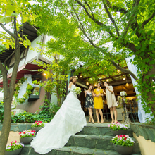 緑と花々に彩られたプライベート感たっぷりの南仏風ガーデン付きレストランでアットホームなウエディング。