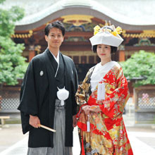 緑豊かな歴史ある神社で少人数からの神前結婚式。縁結び、家内安全、商売繁盛の御神徳がいただけます。